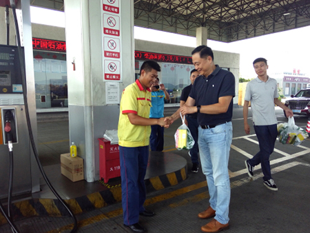 在调研结束后,周大勇对在高温下作业的加油站员工进行了慰问,感谢他们为加油站付出的辛勤劳动,要求公司要关心他们的工作和生活,使所有员工能享受到大家庭的关爱和温暖。