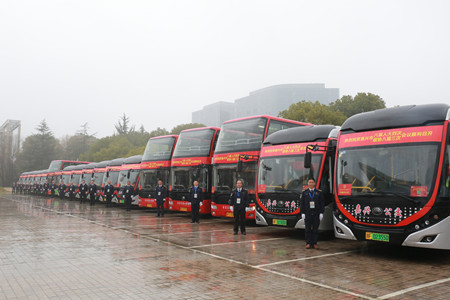 嘉兴市八届人大四次会议、政协八届三次会议分别于1月14日、1月13日召开。为全面做好市“两会”期间公交运输保障工作,公交公司提前部署、狠抓落实、有序推进,以最高的工作标准、最佳的精神风貌投入到市“两会”接送服务中去。公交公司共计投入22辆接送车(含1辆应急车),并挑选了22名业务技能高、服务意识强的优秀驾驶员执行市“两会”运输接送任务。与以往不同的是,此次有4辆双层巴士和14辆“子弹头”纯电动公交车首次共同亮相市“两会”现场,充分展现了嘉兴公交对外服务形象。