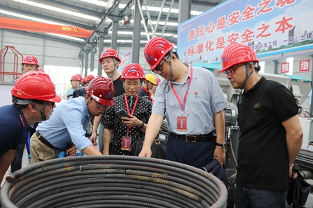 与会人员实地踏勘了一期工程土建1标段民工生活区及钢筋加工场,仔细了解了民工生活区配置及安全措施,参观了钢筋加工场设备配置、材料堆放、现场施工等。