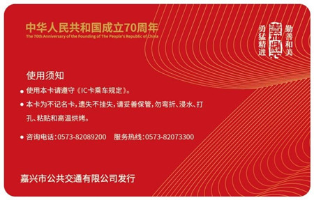 嘉兴公交将发行交通一卡通“中华人民共和国成立70周年纪念卡”
