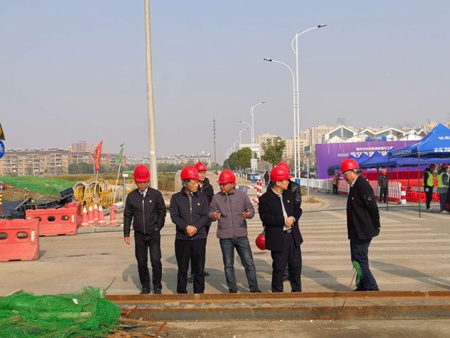 王马青一行首先来到湾北二期项目,全程查看了道路建设收尾情况;在市区快速路环线工程土建02标段,王马青一行现场听取了标段施工进展、人员配备、存在困难等情况介绍,对市区快速路环线工程在这么短时间内已出形象表示肯定。