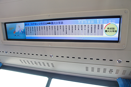 “‘游1’路作为旅游公交专线,车辆的舒适度有了很大提升。”国鸿公交相关负责人表示,“投入的13辆油电混合动力的新能源车都是今年新购置的车辆,车内设施设备齐全,具有‘低能耗、低排放、高经济性’的特点。同时‘游1’路所有车辆内都安装了LCD的显示器,可实时显示到站信息,当前到哪一站一目了然,还可对旅游资源进行相应的介绍。”车厢一侧除电子线路走向图外,还有乘客须知、安全提示等内容,另一侧设有‘美丽嘉兴’的景点宣传画。
