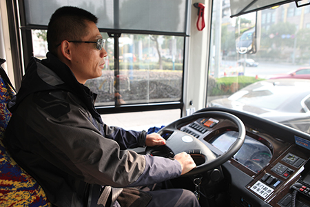 驾驶员胡师傅开心地说:“这个车与以前车辆最大的不同是起步平稳,基本无噪声,还有许多人性化设计,车内设有8个下车提示按钮,只要乘客到站前按下红色按钮,我这里就有下车请求提示了,再也不怕人多听不清了”。