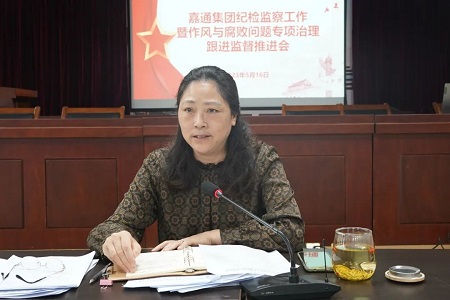 5月16日,嘉通集团召开作风与腐败问题专项治理跟进监督推进会,集团公司党委委员、纪委书记、监察专员叶建英主持会议并讲话,集团纪委委员、所属各公司纪检工作分管领导及部门负责人参加会议。