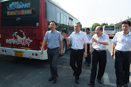 8月7日,市委副书记、代市长毛宏芳、市政协副主席敖考权、市政府秘书长沈建华、市总工会负责人一行来到嘉兴高铁南站公交枢纽,慰问一线公交驾驶员。集团公司董事长沈兰冠陪同慰问。