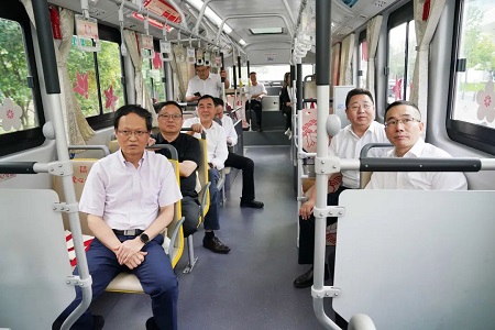 朱学军一行首先来到大新路公交枢纽站,听取嘉通集团关于市区公交场站规划布局、城乡公交三次改革、大新路公交枢纽站暖心驿站建设等情况的汇报;随后,调研组乘上101路公交车,体验红色旅游公交线路,了解城乡公交一体化改革成果,亲身感受嘉兴城乡一体化发展带来的便利。朱学军充分肯定嘉通集团在公交民生服务方面的举措和成效,要求继续优化设施、提升服务,更好满足群众的公共交通出行需求。